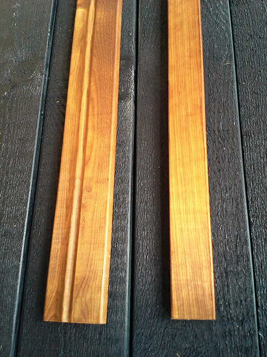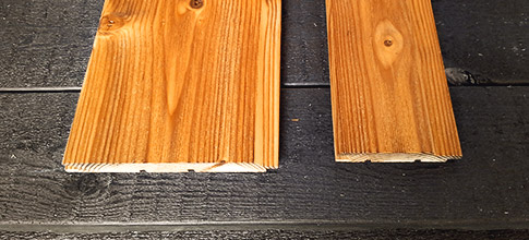 Kuvassa paneeleita lämpökäsitellystä kuusesta.